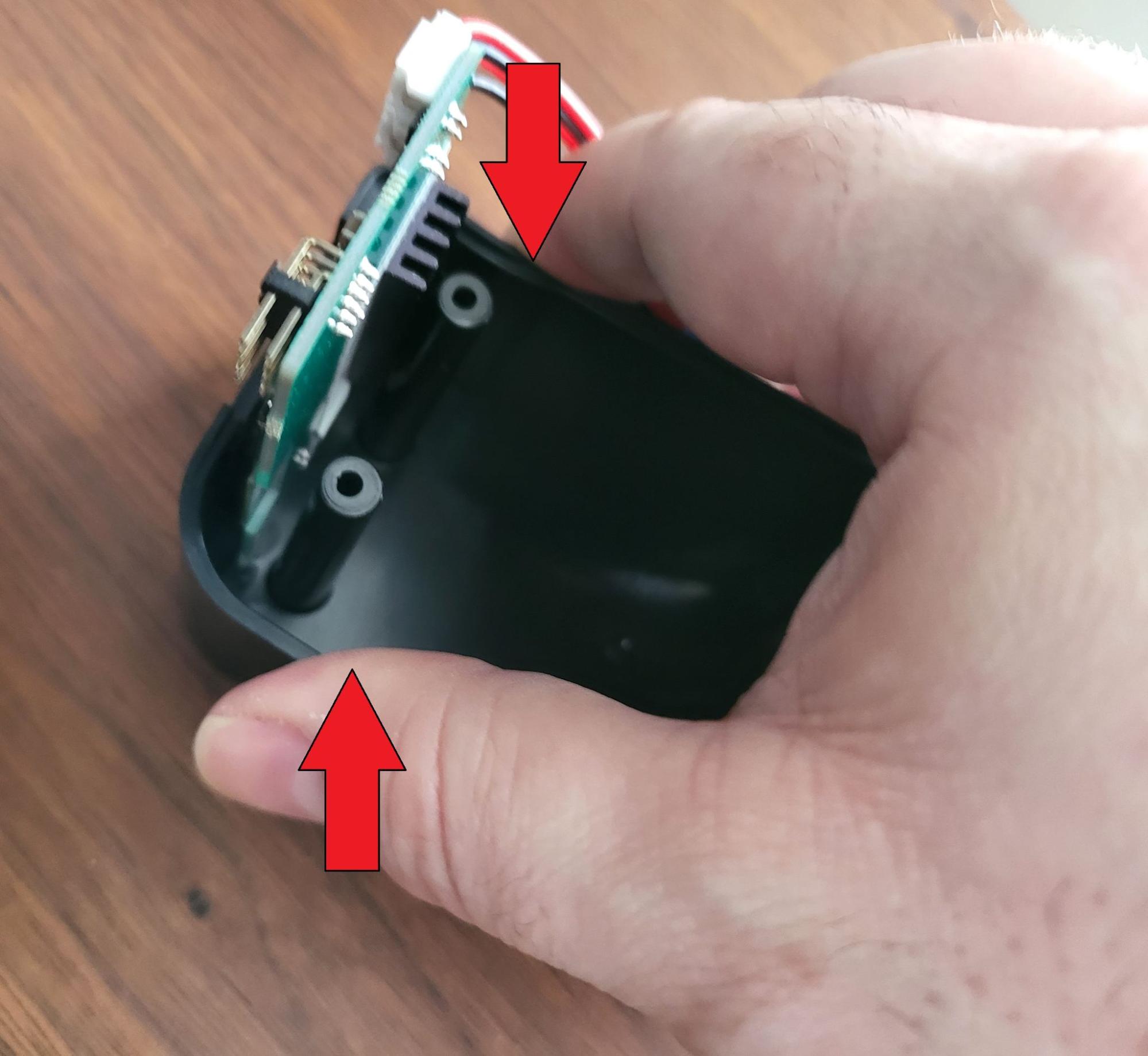 When reassembling the case halves, pay close attention that there is a slot for engaging the PCB board on the other half of the case as well. This will sometimes keep the halves from mating completely, and should not be forced. Offsetting the case forward or backwards from the belt attachment lug and seating that end first may assist in getting the PCB to seat correctly in the case slot. Check for swarf in the PCB slot, or hot glue traces on the PCB, if getting it to seat completely is proving difficult. Separating the case halves and re-assembling can also sometimes “magically” cure difficult alignment problems. Be patient, and don't force them.